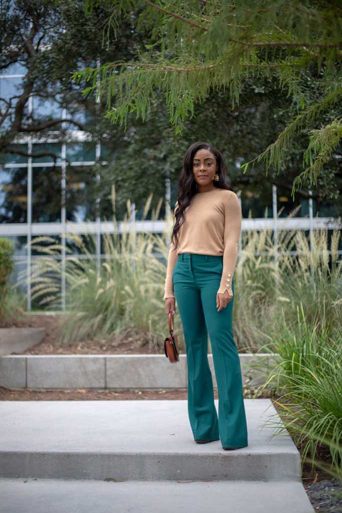 This is a great basic sweater to have within your wardrobe. You can use it as a layering piece with a jacket, vest, or blanket scarf. Another alternative is how I styled it here in this post. This is a great look if you are wanting to spruce up your work wardrobe. It is perfect for going from the office to a holiday party this season.